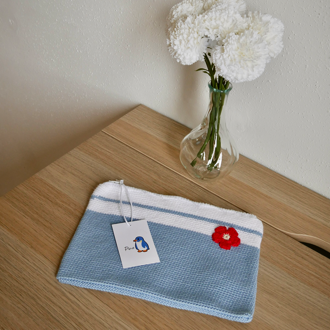 Trousse de toilette PINO bicolore tricotée en laine 18x25cm