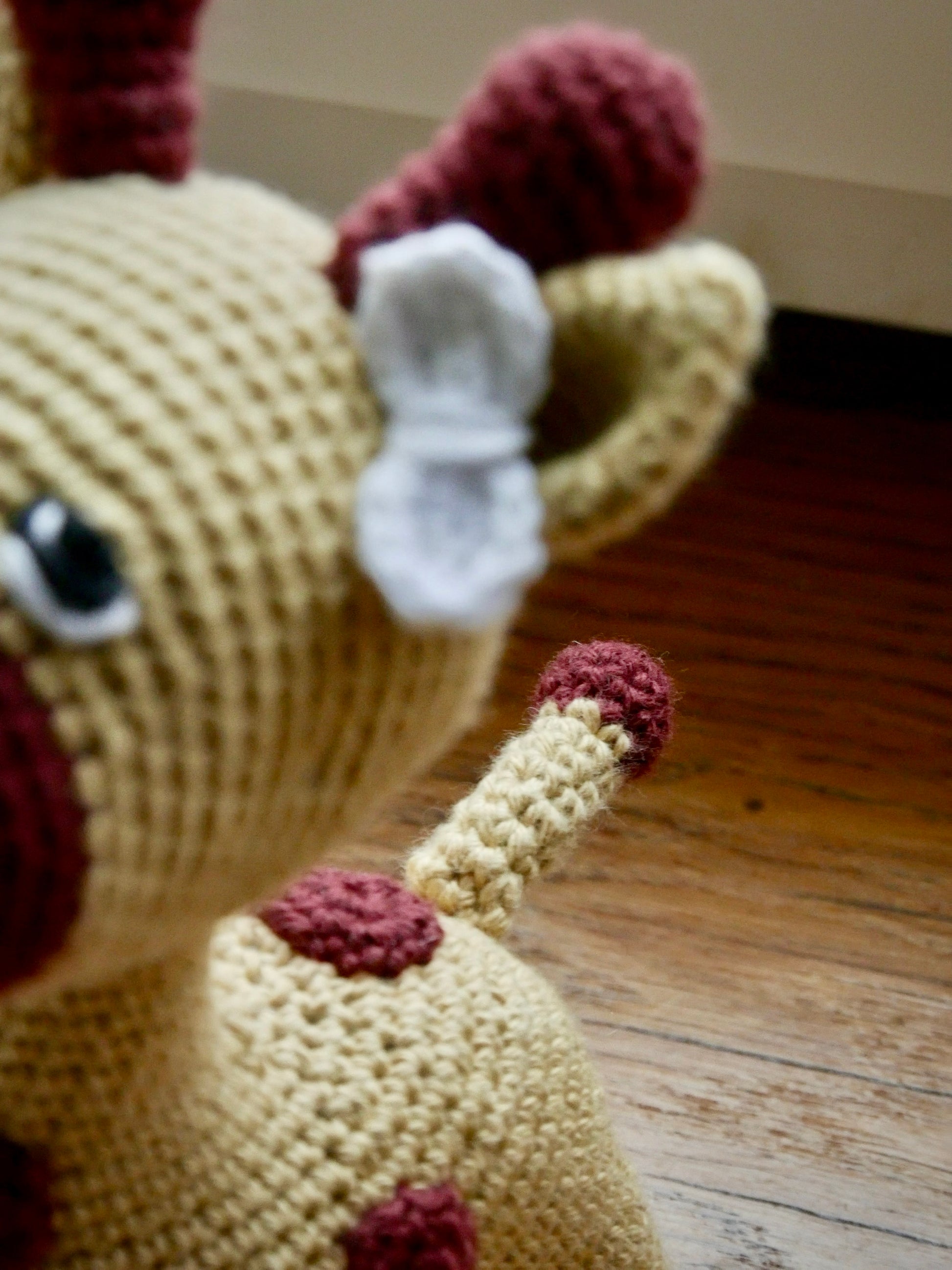 Girafe amigurumi beige/lin ou ocre/bordeaux